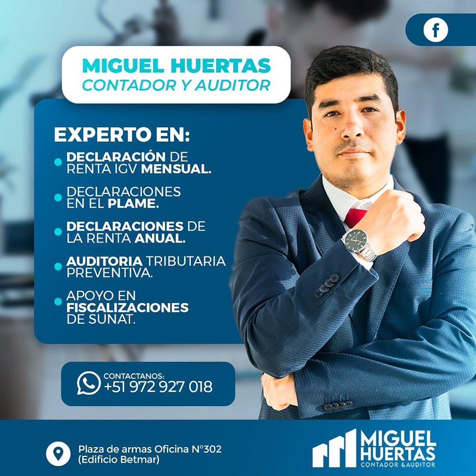 "Al iniciar mi emprendimiento carecia de un area especializada que me ayudara con la gestion de los impuestos y la contabilidad, con la asesoria del estudio contable Miguel Huertas la empresa logro una consolidacion en sus procesos, los recomiendo.
